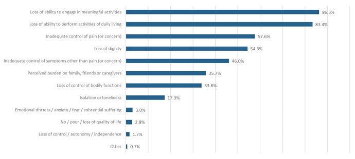 Numbers of people receiving MAID have increased considerably since 2016, with much variation across the country. The highest percentage of deaths due to MAID have been reported in BC and PQ, with Saskatchewan, Newfoundland and Manitoba generally reporting lowest rates. The most common condition responsible for the MAID request has been cancer, particularly lung cancer. Interestingly, the greatest nature of suffering reported has NOT been pain as initially anticipated, but loss of ability to engage in meaningful activities. Similarly, the early expectation that MAID would not be necessary if there was adequate access to palliative care has also not been confirmed, as many patients receiving even inpatient palliative care have sought and received MAID.